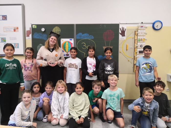 Die Kinder, der 3c-Klasse drückten am 5. 9. 2025  ihrer Klassenlehrerin Johanna Scherb ganz fest die Daumen.