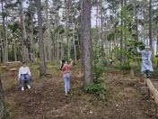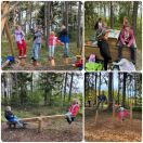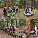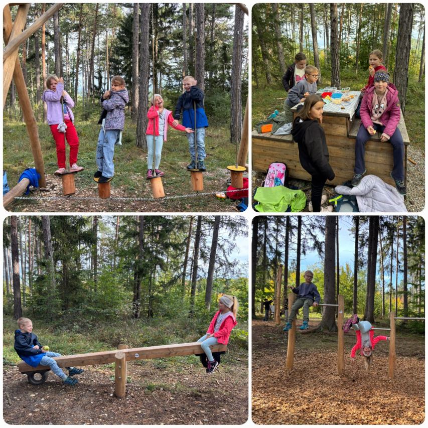 Oben angekommen wurde zuerst gejausnet und danach in Kleingruppen die Mammutbäume betrachtet, der Wald mit allen Sinnen gespürt und die Aktivitätsübungen mit Begeisterung durchgeführt.