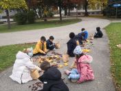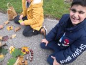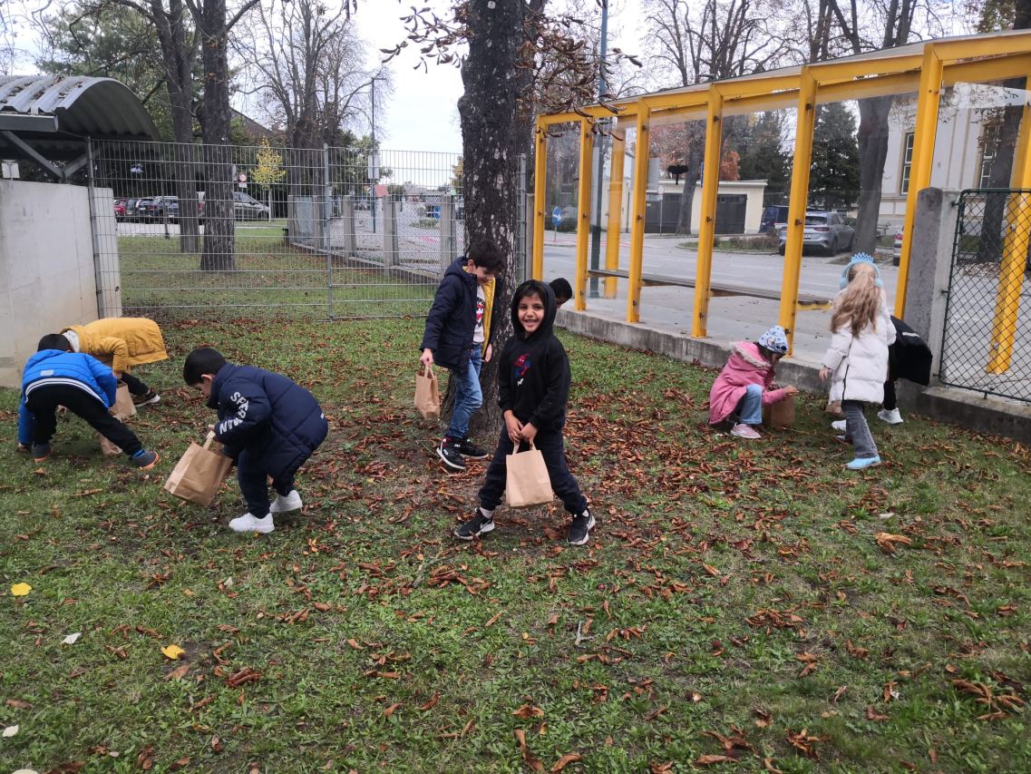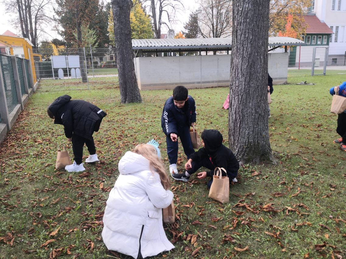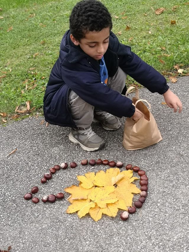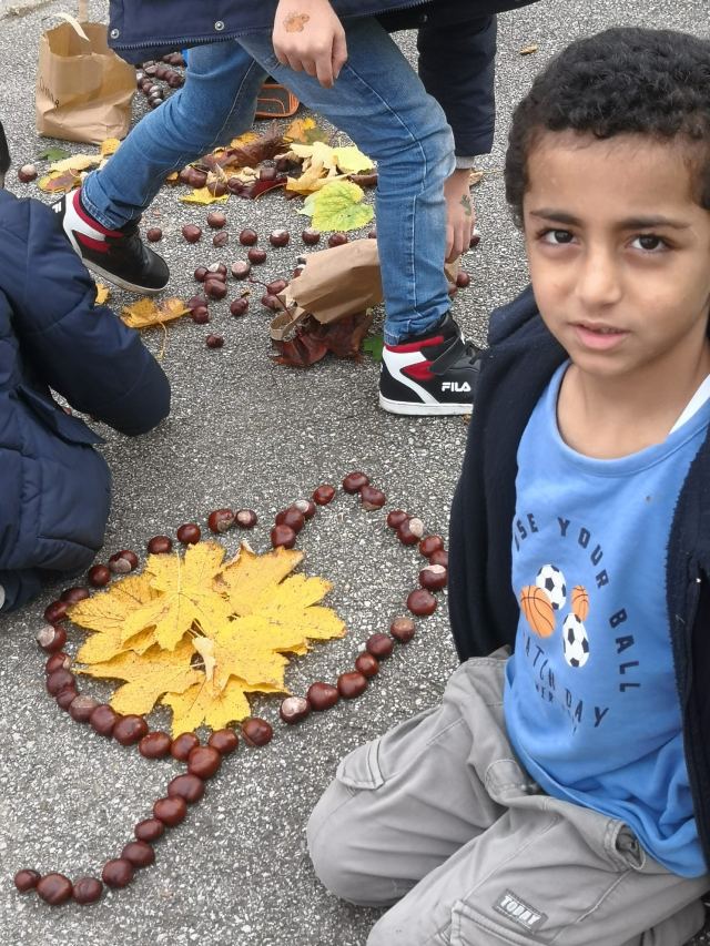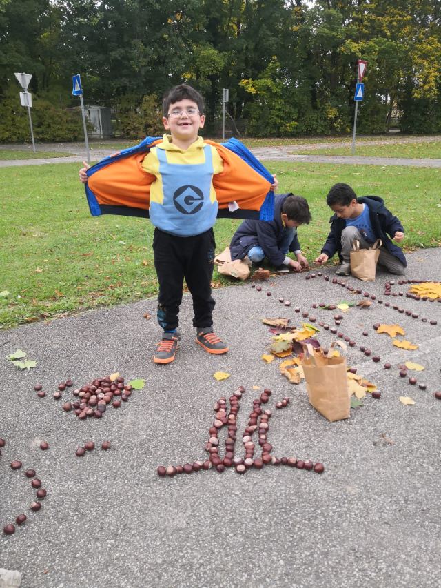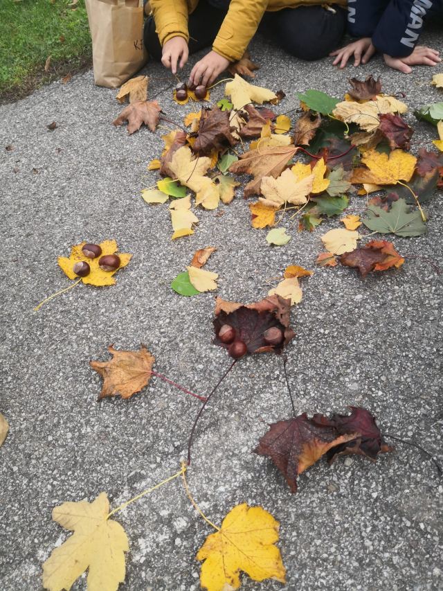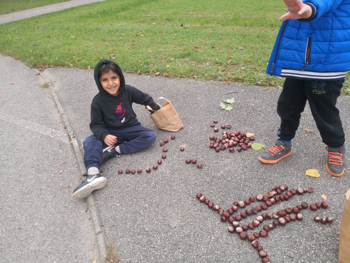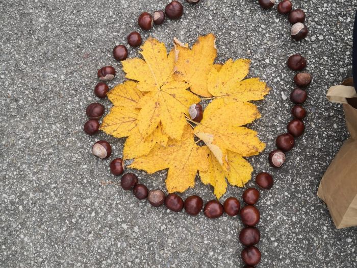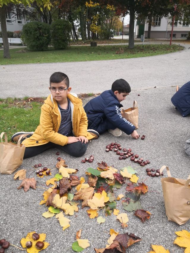 Mit Kastanien und bunten Blättern versuchten die Kinder der Deutschförderklasse schöne Bilder zu legen.