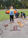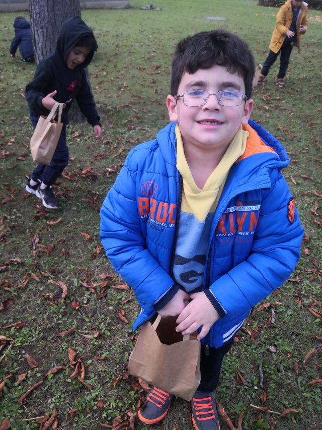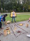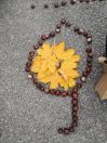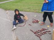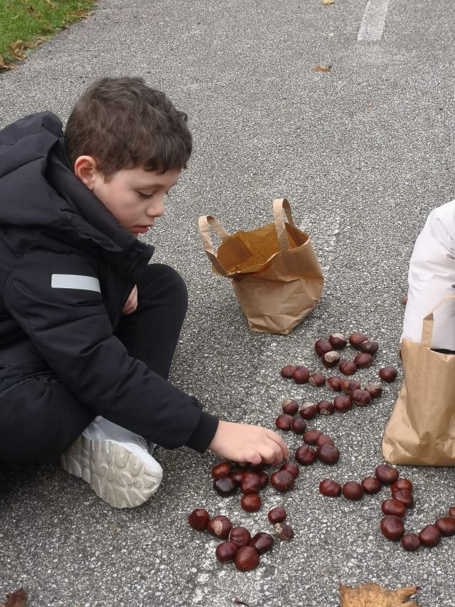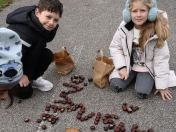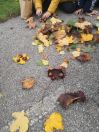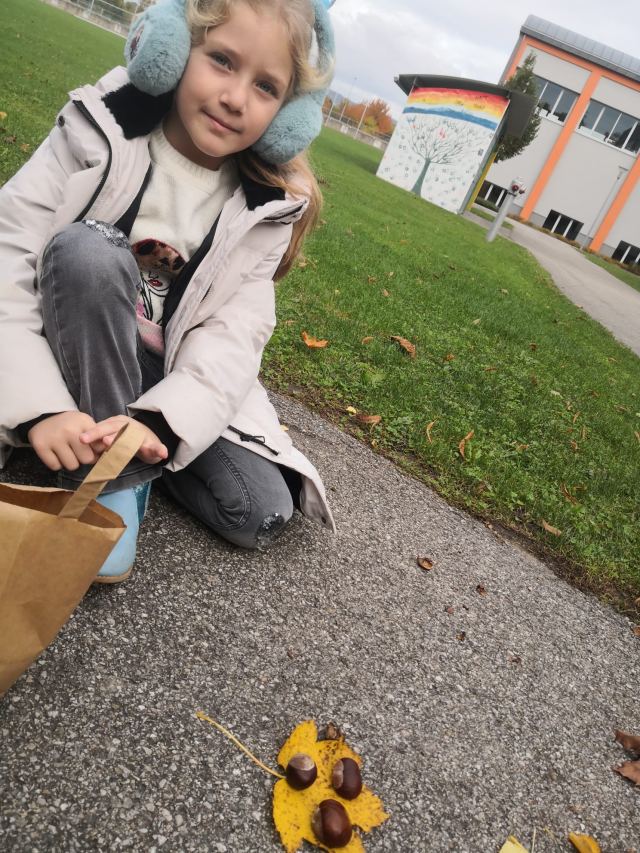 Zuerst wurde eifrig nach Kastanien und bunten Blättern gesucht. Danach gestalteten die Kinder eigene Kunstwerke. Sie durften auch ihren Namen mit Kastanien schreiben. Allen hat es großen Spaß gemacht.