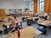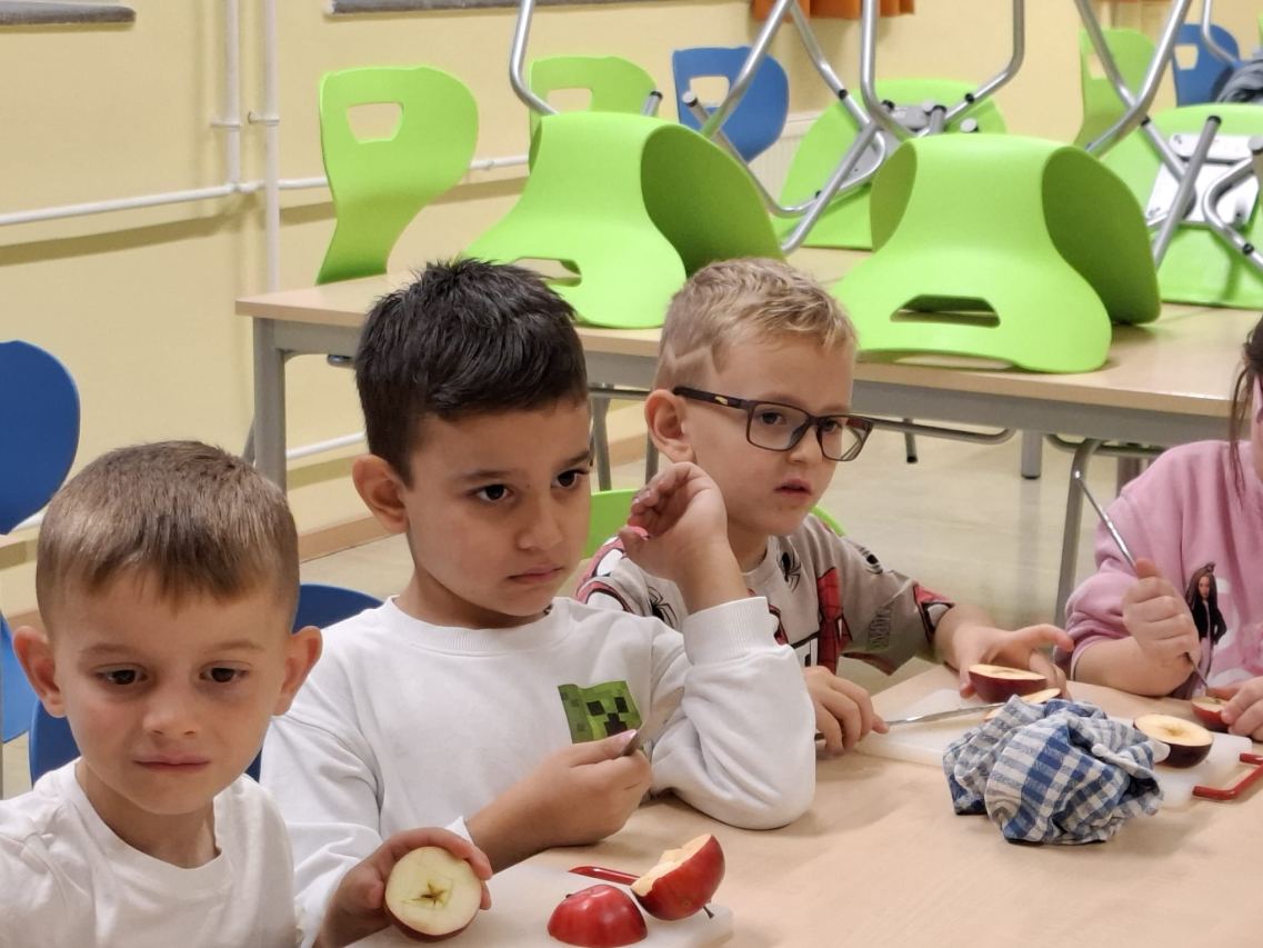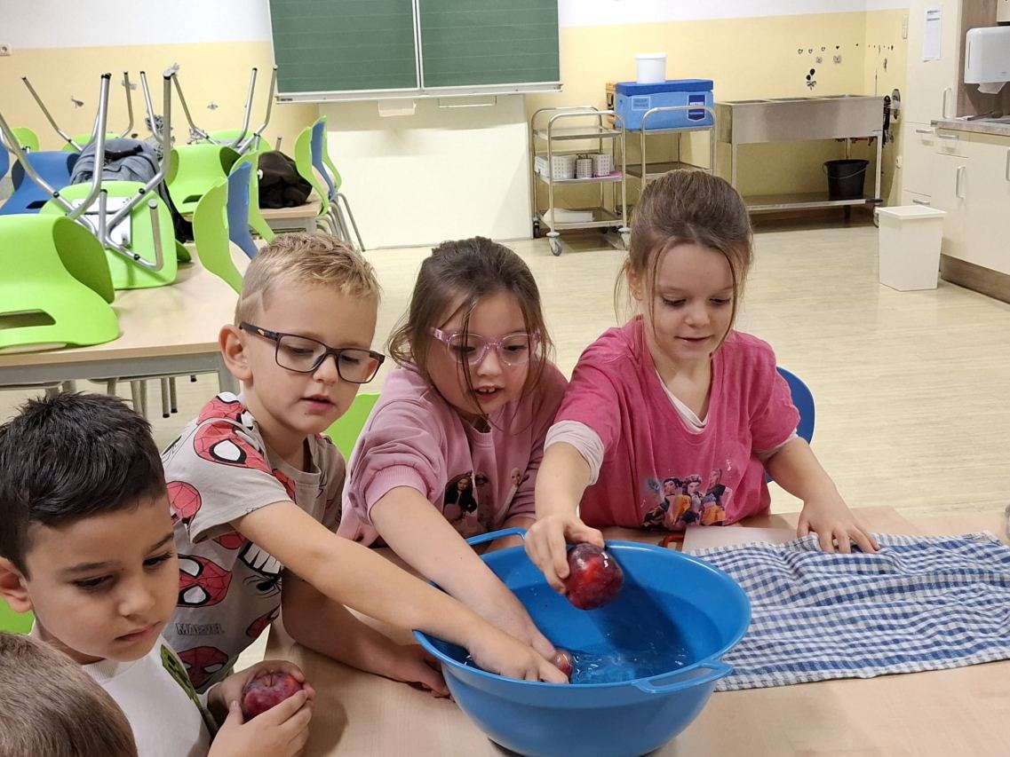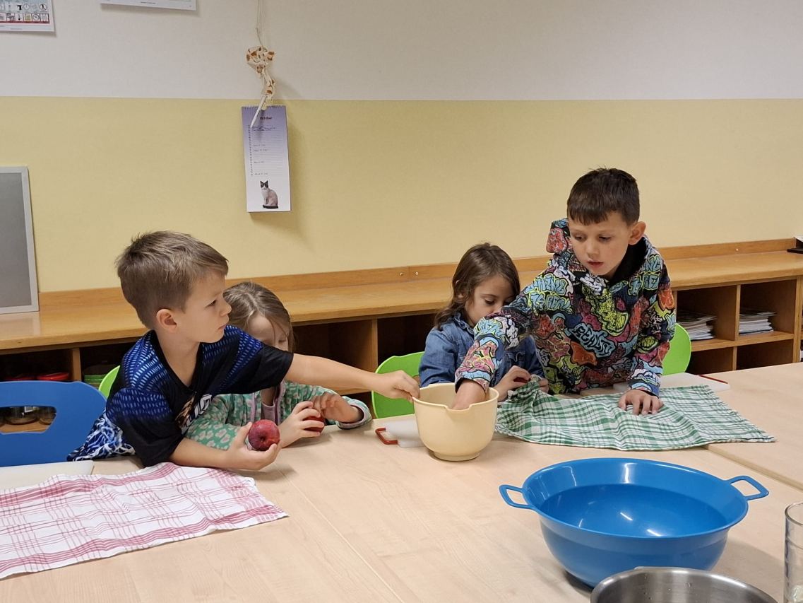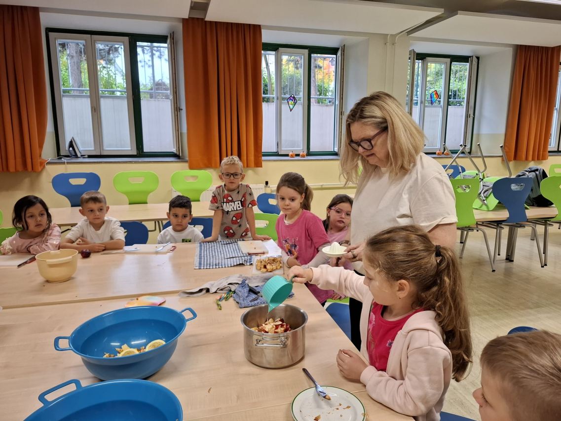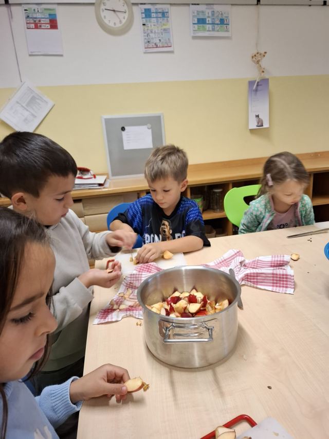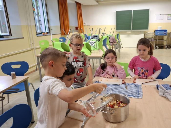 In den 1. Klassen bereiteten die Kinder ein Apfelkompott zu.
