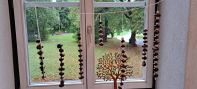 Mit den fertigen Girlanden schmücken wir dann unsere Fenster. Jetzt sieht es schon richtig herbstlich bei uns aus!