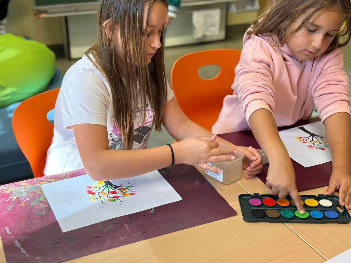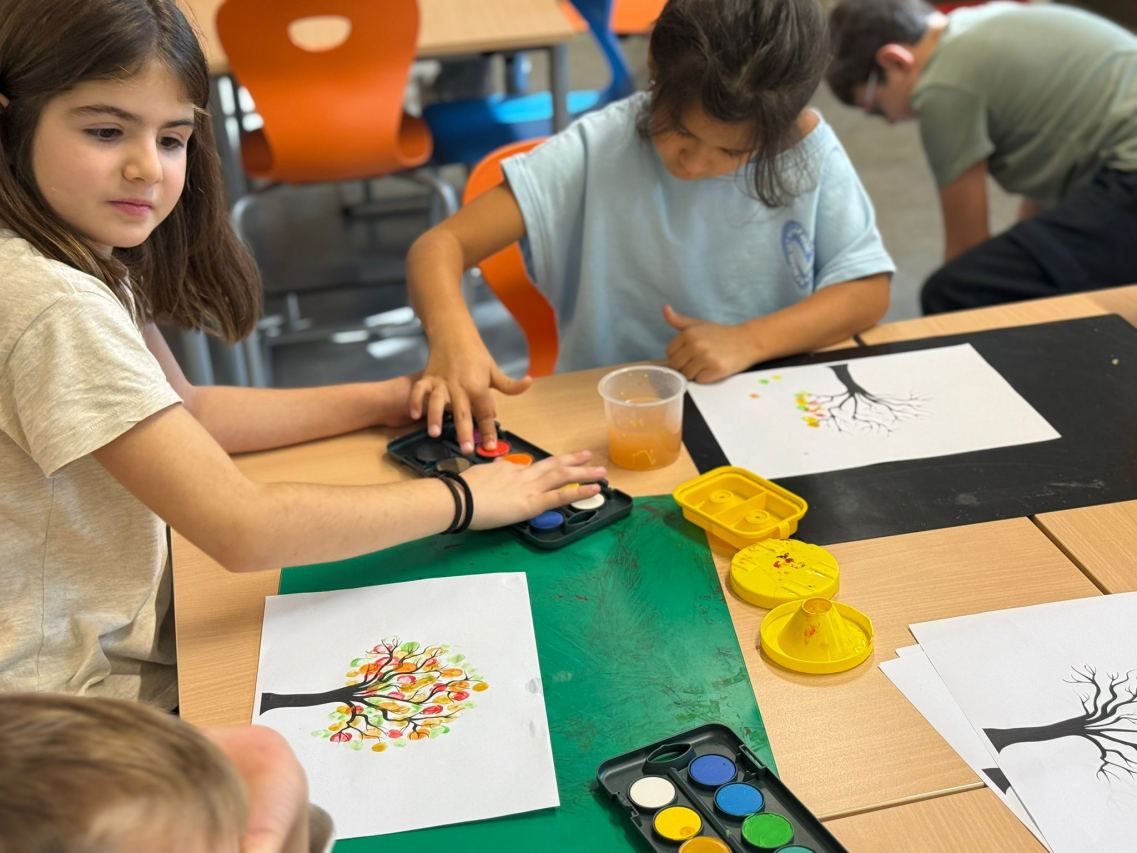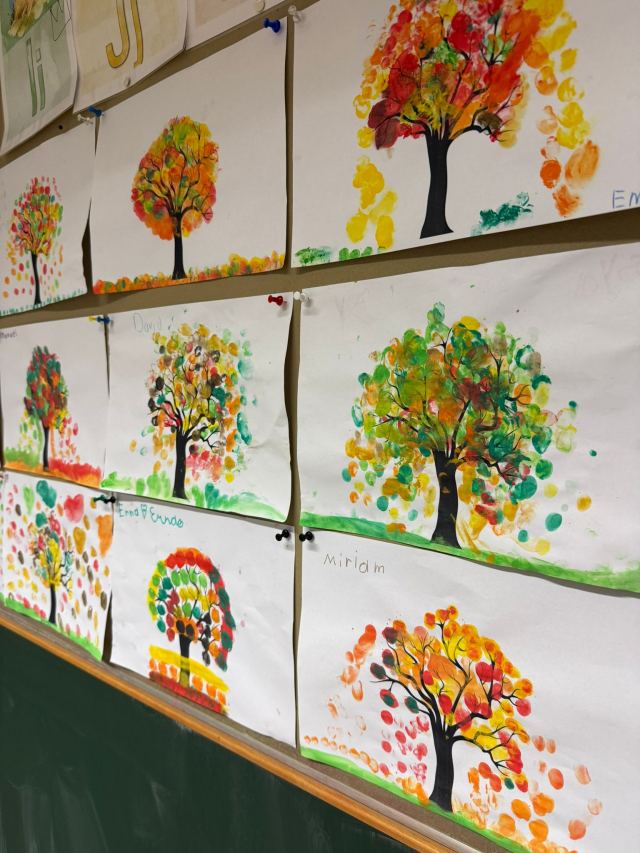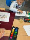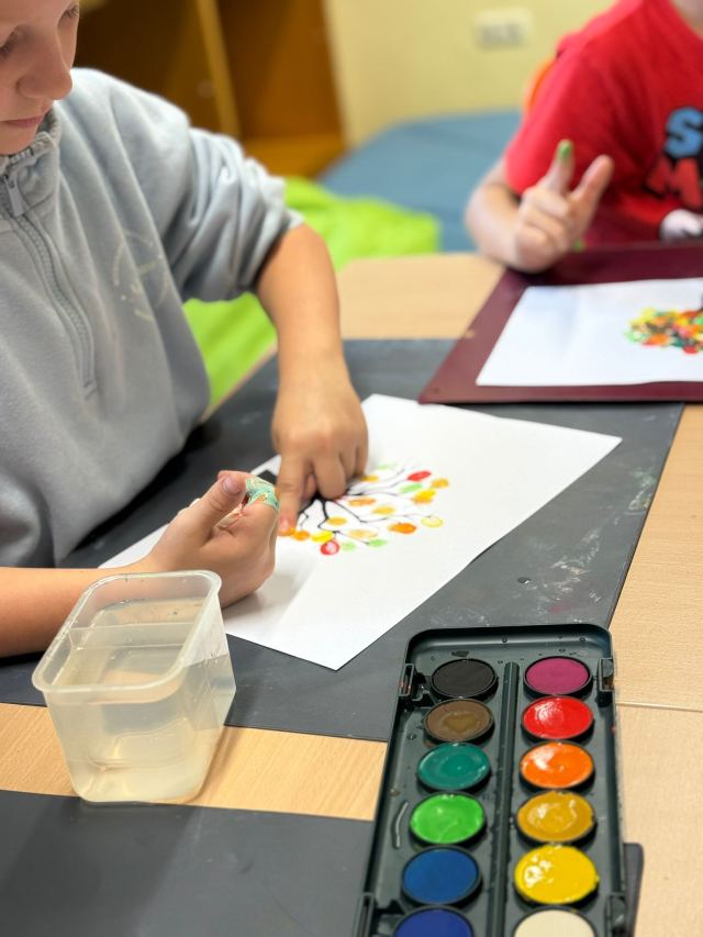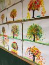 Für die Bäumchen tupfen wir mit den Fingern Malfarbe auf die Äste.
